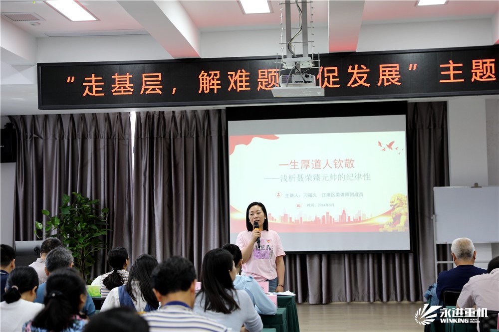 參觀后,在四樓會議室進行了黨紀學(xué)習(xí)教育,學(xué)習(xí)了習(xí)近平總書記在新時代推動西部大開發(fā)座談會上的重要講話 ,《中國共產(chǎn)黨紀律處分條例》,觀看了警示教育片。隨后,區(qū)關(guān)工委思想道德教育團成員、白沙鎮(zhèn)二級巡視員刁福久以“一生厚道人欽佩-淺析聶榮臻元帥的紀律性”為題,為全體黨員干部上了一堂生動的紀律黨課。他通過生動的講述,配以大量史料佐證,真實地再現(xiàn)了聶榮臻元帥在法國勤工儉學(xué)、中國革命實踐、國防科技發(fā)展等不同時期如何踐行初心和使命,嚴守黨的紀律,遵守黨的規(guī)定,清正廉潔,嚴格家風(fēng)家訓(xùn),為黨和人民的事業(yè)奮斗一生的傳奇經(jīng)歷。宣講中,刁福久飽含深情,黨員同志們凝神靜聽,現(xiàn)場不時爆發(fā)出熱烈掌聲。